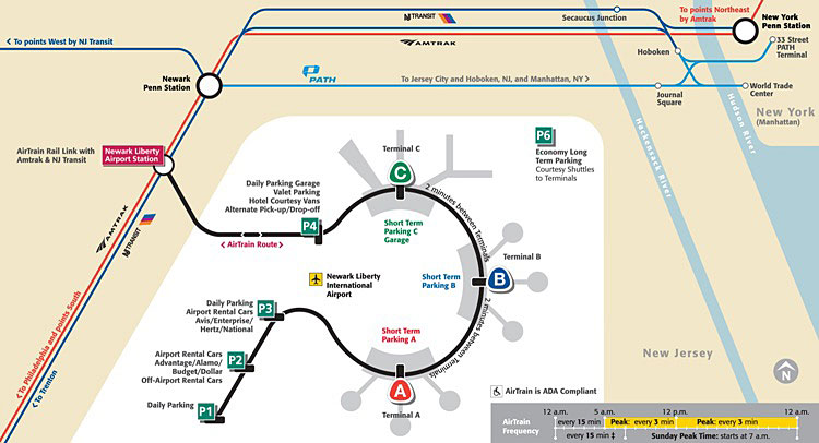 En Newark también hay un servicio de Transfer (shuttle) continuo a Manhattan, al igual que en JFK y en La Guardia, por unos 13€/19$ por persona.