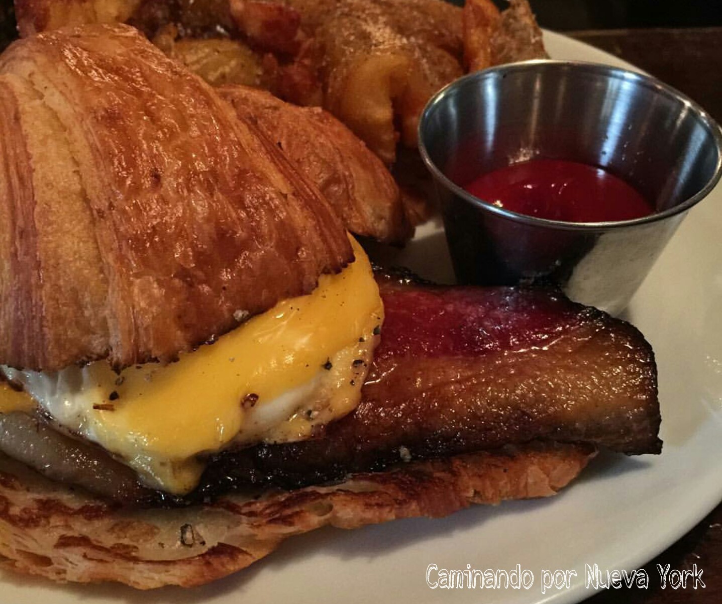 Hacen unos croissants con bacon, huevo y queso que están deliciosos …. uuummmm!!! Al ver la foto y recordar, quiero uno ahora jejeje