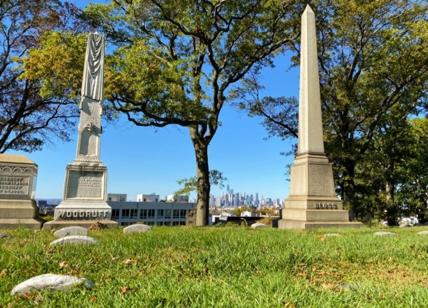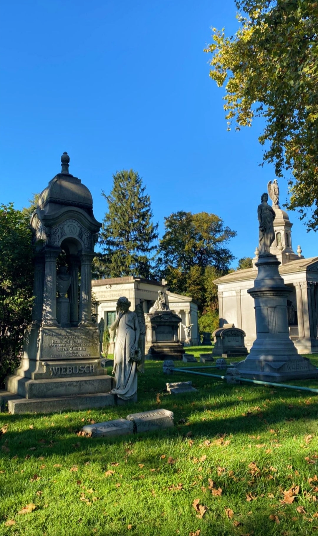Green-Wood Cemetery abrió sus puertas en 1838. Son 478 acres de colinas y robles sombreado con vistas del skyline de Manhattan, la Estatua de La Libertad y de Brooklyn. No es solo un lugar tranquilo para la contemplación y el recuerdo, sino que también era y es un lugar en los que la gente pasea por sus tumbas con historia y hacen un picnic. Lo del picnic me chocó muchísimo por ser el lugar qué es, pero es como una tradición, un lugar de paz que comparten muertos y vivos. Es como sucede en el famoso e histórico Trinity Church Cemetery en Wall Street, en sus bancos entre semana te sueles encontrar a trabajadores de la zona comiendo su comida de take-away o con su táper de casa.